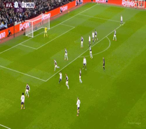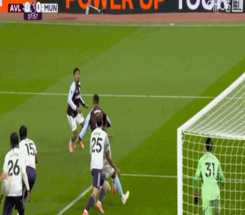 第45分钟,纯个人能力!摩根-罗杰斯内切抽射挂死角,维拉1-0领先曼联!
