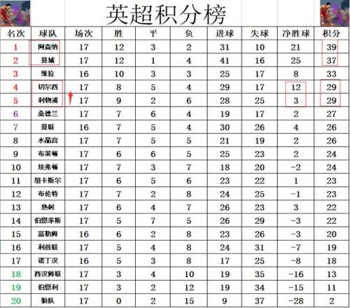 积分榜方面,阿森纳和曼城今天都赢了球 ,这样的话阿森纳就还是2分优势力压曼城继续领跑。切尔西无力击败纽卡,利物浦赢球后追上了切尔西,暂时是净胜球劣势排在切尔西之后,再次冲回前5。